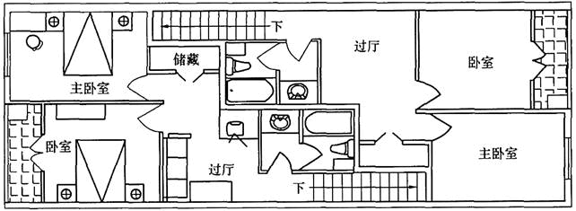图1-2-1(b) 上(下)标准层平面A. 有明厨明卫