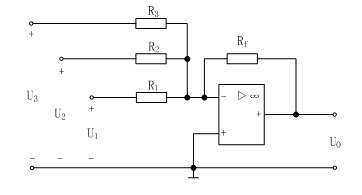 图为理想运放电路,求输出电压UO和输入电压U1、U2和U3的关系。