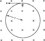 如图所示,有一带电粒子的电量q=+3.2×10-19C,质量为m=6.7×10-27kg,在磁感应强度为B=2.6×10-2T的匀强磁场中运动,速率为v=5×104m/s,方向与磁场垂直,试求: