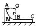 如图所示.光滑的水平面上有质量为M的滑块,其中AB部分为光滑的1/4圆周,半径为r,BC水平但不光滑,长为l.一可视为质点的质量为m的物块,从A点由静止释放,最后滑到C点静止,求物块与BC的动摩擦因数.